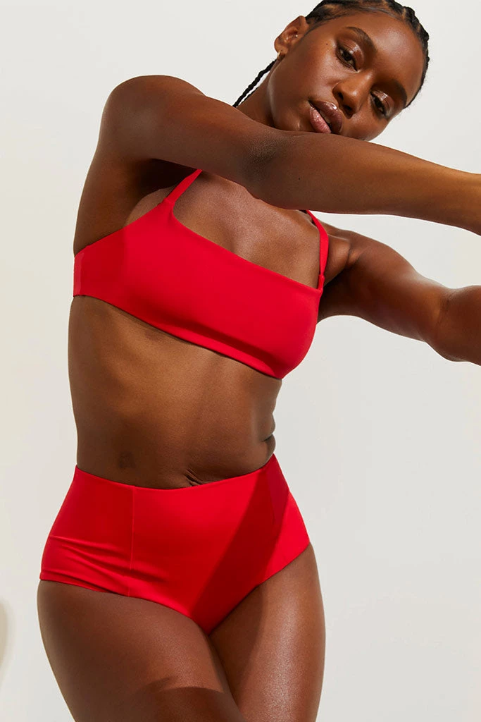 A wireless bikini top in an ultra smoothing and supportive stretch nylon. This is streamlined swim.