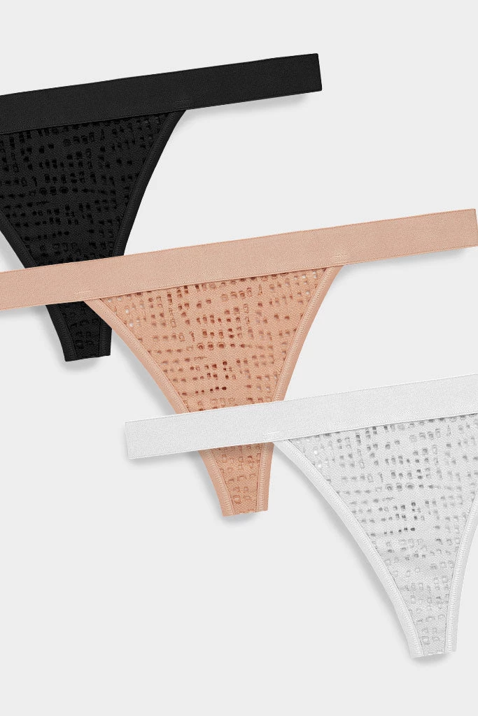 Our version of anti-lace in a classic low rise cut. This is far from your average thong.